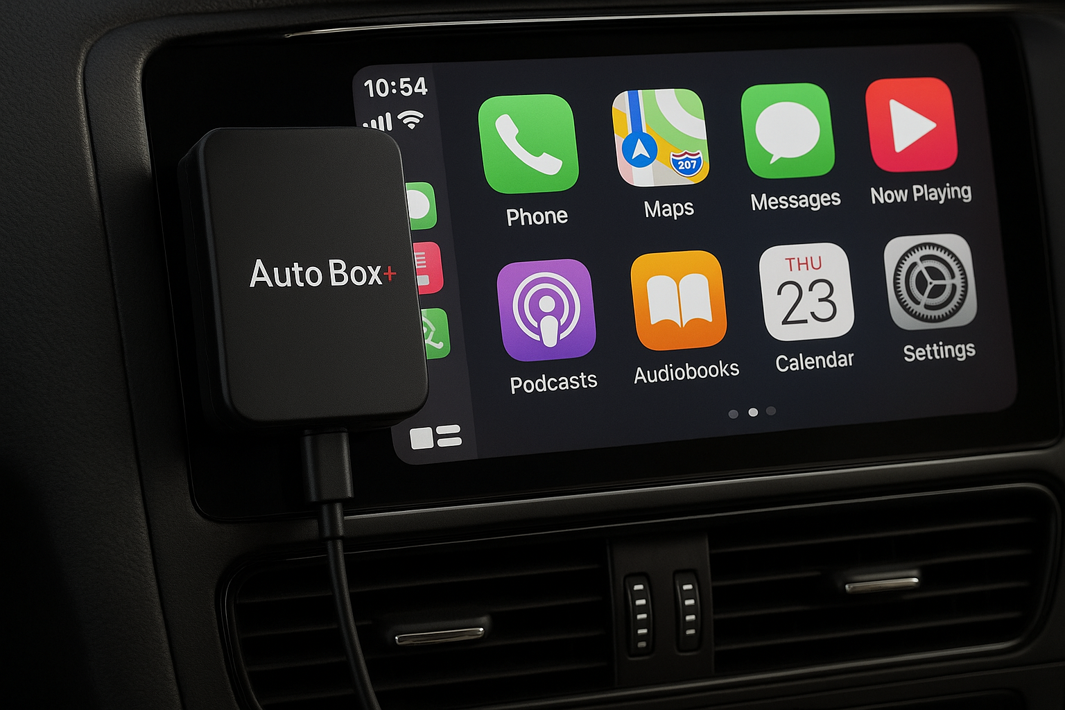 Découvrez AUTOBOX+, le boîtier CarPlay révolutionnaire qui transforme votre écran de voiture en véritable centre multimédia. Connectez-le en plug & play, sans installation compliquée, et profitez instantanément d’une expérience de conduite nouvelle génération.
